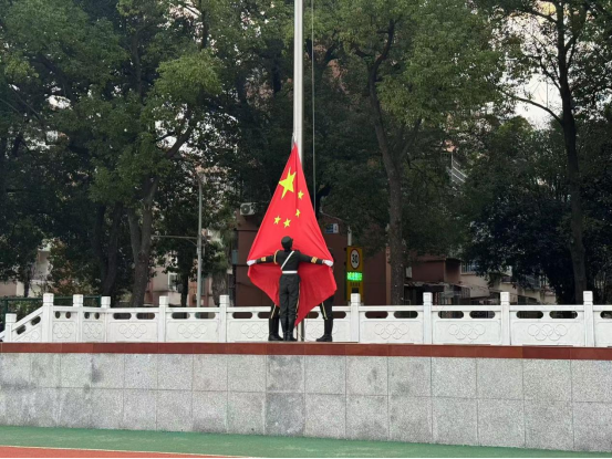 随着国歌的奏响,国旗缓缓升起,参加升旗仪式的全体师生面向国旗,高唱国歌,行注目礼。