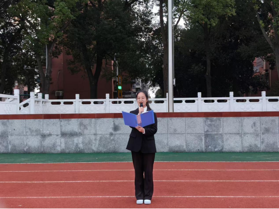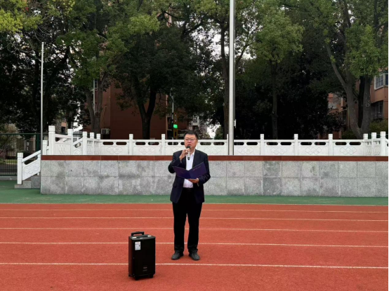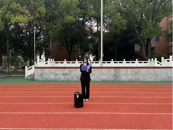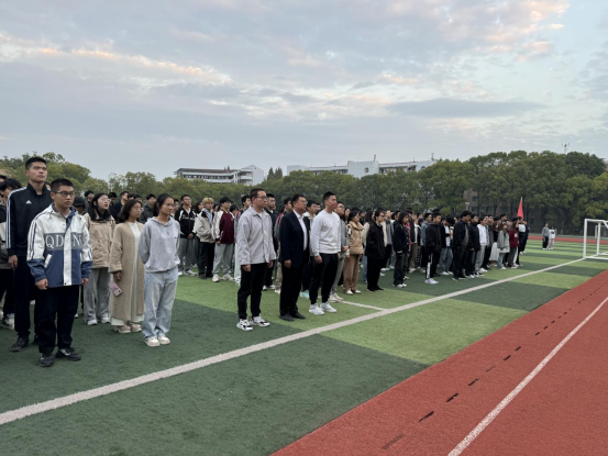 在西校区操场举行升旗仪式。院党委副书记谷军老师、院团委书记黄何老师、辅导员吴朝晖老师以及全体大一新生相聚于此。本次升旗仪式由刘芯彤主持。