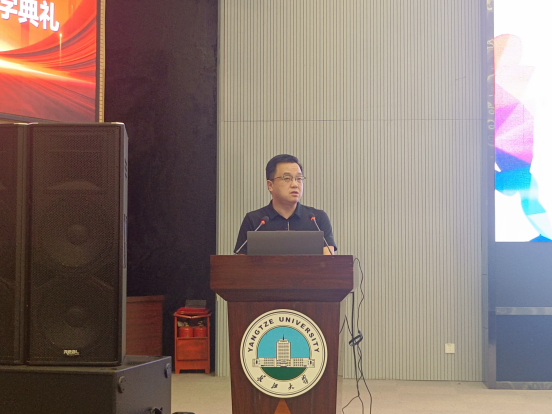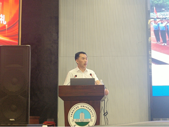 在长江大学西校区农科大楼1058举行新生开院典礼,党委书记李喜成、院长张涛、党委副书记谷军、副院长李向军、学工办主任钟赛、团委书记黄何、辅导员吴朝晖、部分老师以及全体大一新生参与此次典礼。