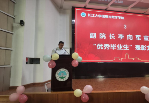 于6月7日下午2点30分在12教405报告厅隆重举行2024届毕业生毕业典礼暨学位授予仪式。院党委书记李喜成、院长张涛、院党委副书记谷军、副院长李治、副院长李向军、教授胡洁、教授何先平、教授宋银芳、学工办主任钟赛、院团委书记黄何、毕业班班主任及全体毕业生出席此次会议。此次会议由钟赛主持。