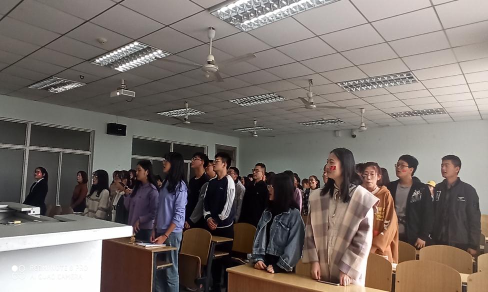主持人代表数学11802班全体同学对所有来观摩学习此次团会的同学表示由衷的感谢和热烈的欢迎后,为与会成员讲述了中国共产党——中国工人阶级先锋队所代表的根本利益和占有的重要地位,并带领大家重温中国共产党的由来和艰难的发展历程,阐述了现阶段我国的5个基本国情,主要矛盾,以及根本任务,指明了不忘初心跟党走的大致方向。随后,由周金荟同学为大家朗诵《习近平新时代青年思想》的节选内容,其中习近平总书记指出:“全面建成小康社会,广大青年是生力军和突击队。中华民族伟大复兴的中国梦终将在一代代青年的接力奋斗中变为现实。”并进一步阐述了新时代青年对国家的深远意义,以及对青年一代的殷切期望。在主题互动答题环节中,同学们热情高涨,踊跃回答关于党的建设,我国基本经济制度,政治制度等方面的问题,由此获得小礼品,会场气氛十分活跃。最后大家齐唱《我和我的祖国》,在悠扬的歌声中,本次团会圆满结束。