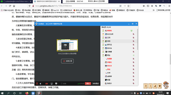 各班陆续组织召开“安全返校与顺利开学”线上主题班会。各班班主任及全体学生共同参与。