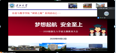 特于9月12日下午3时召开“梦想启航 安全至上”新生入学前主题教育线上会议。院党委副书记袁海山、辅导员钟赛、2020级全体新生参加本次会议。会议由钟赛老师主持。