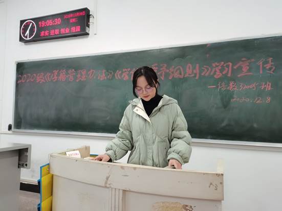 于12月8日晚19时在7教308室开展了学习宣传活动。此次活动由信数32005班团支书陈艾思主讲,信数32005班全体同学参与。