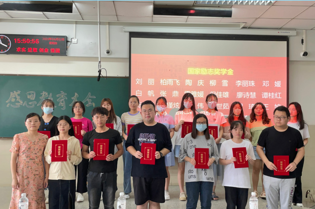 于6月2日下午15:30在12教302举办感恩教育大会。院党委副书记袁海山、学工办主任严星及18、19、20、21级获得奖助学金的学生与会。本次活动由高一好主持。