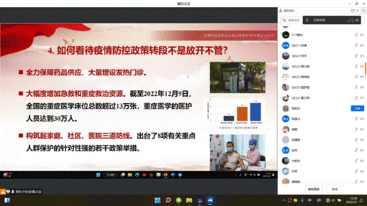 首先,由各班班委带领大家回顾了我们三年来抗战疫情的情况,带领大家学习抗疫精神,让每位同学做好自己健康的第一责任人。