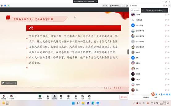 在腾讯会议召开3月政治理论学习会议,此次会议吴伟主持,全体研究生线上聆听。