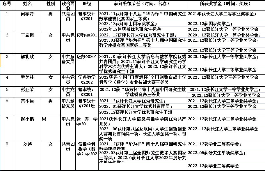 根据学校《关于开展2023届优秀研究生毕业生评选工作的通知》要求,娱乐城注册 认真组织开展了2023届优秀研究生毕业生评选工作,经个人申请、班级推荐、学院审议,讨论决定拟向学校推荐优秀研究生毕业生8名,现予以公示。