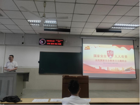 于4月18日下午六点三十分在12教202开展“全民国家安全教育”主题活动。参加此次活动的有辅导员吴朝晖老师、各年级班长、团支书、心育委员、组宣委员、寝室长和23级全体同学。