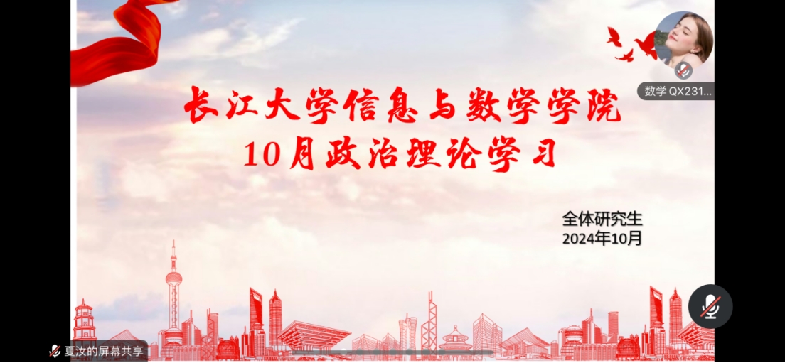 全体研究生在线上开展十月政治理论学习活动,此次会议由研究生会组织部夏汝主持。