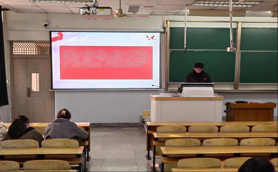 全体研究生在13教A102开展十二月政治理论学习活动,此次会议由院研究生会组织部鲍泽智主持。