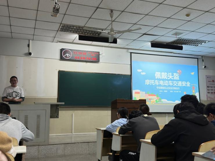 会议伊始,吴朝晖老师结合近期发生的校园交通安全案例展开讲话,又结合所见所闻对我校曾发生的交通安全事故做出分析。所列问题涉及同学人身安全和财产安全,重点强调了外出交通的重要性。接着,吴朝晖老师让大家学习了长江大学关于安全骑行的倡议书。引导学生车辆按照指定通道进出,在规定停车区域进行停放,同时要规范驾驶、文明骑车、行人安全走路、禁止超速等危险驾驶行为。最后,吴朝晖老师再次强调了在校骑行要安全第一,出行要注意安全。会议过程中,同学们聚精会神,认真倾听学校关于车辆摆放的相关规定。本次会议讲座圆满结束。