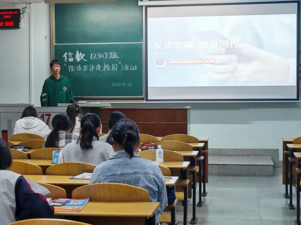 各班于9月21日前后开展“我为同学做实事 防诈反诈进校园”相关主题班会。