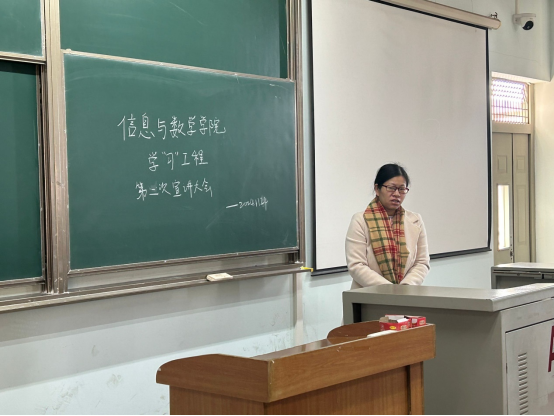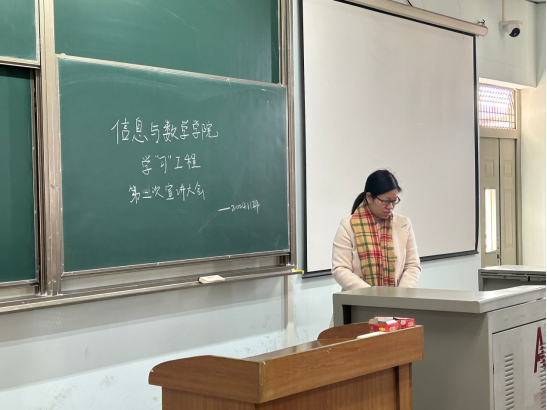 于11月24日在13教A501教室举办了“学习工程”宣讲大会。全体党员、入党积极分子和发展对象参加了此次会议,会议由汪春花老师主持。