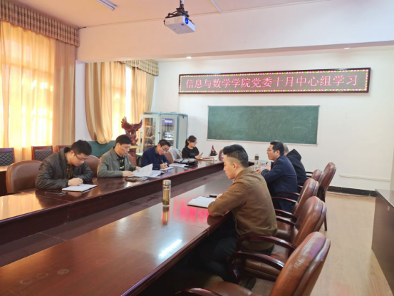 10月26日上午,学院党委理论学习中心组在8教400会议室举行2020年第7次集体学习会,党委书记高迎斌主持,全体中心组成员参加。