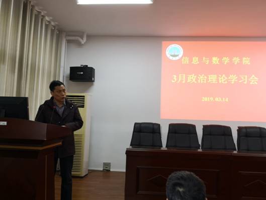 在8教406会议室举行3月教职工政治理论学习会和 党员“支部主题党日”活动。全体教职工和全体党员参加。会议分两个阶段进行。
