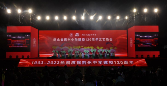 当晚,荆州中学隆重举行建校120周年文艺晚会,长江大学艺术学院艺术团选送的舞蹈《欢歌》和《红船》掀起了晚会的高潮,学生们为观众呈现了一场精彩绝伦的文艺盛宴,他们用歌声、舞蹈、表演等多元化的艺术形式,表达了对荆州中学120周年校庆的热烈祝贺。