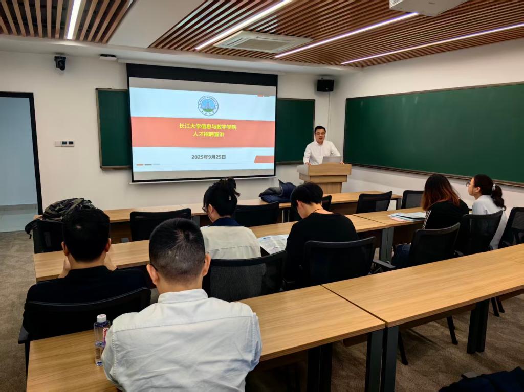 招聘团队一行与各高校数学领域的优秀博士生、博士后及青年学者进行了面对面座谈。张涛详细介绍了本院学科发展优势、科研平台实力、人才培育政策等情况,表达了广纳贤才的诚意。毛德波介绍学院提供的良好事业发展平台和温馨包容的成长环境,欢迎青年人才加入长江大学大家庭,共同成就事业梦想。