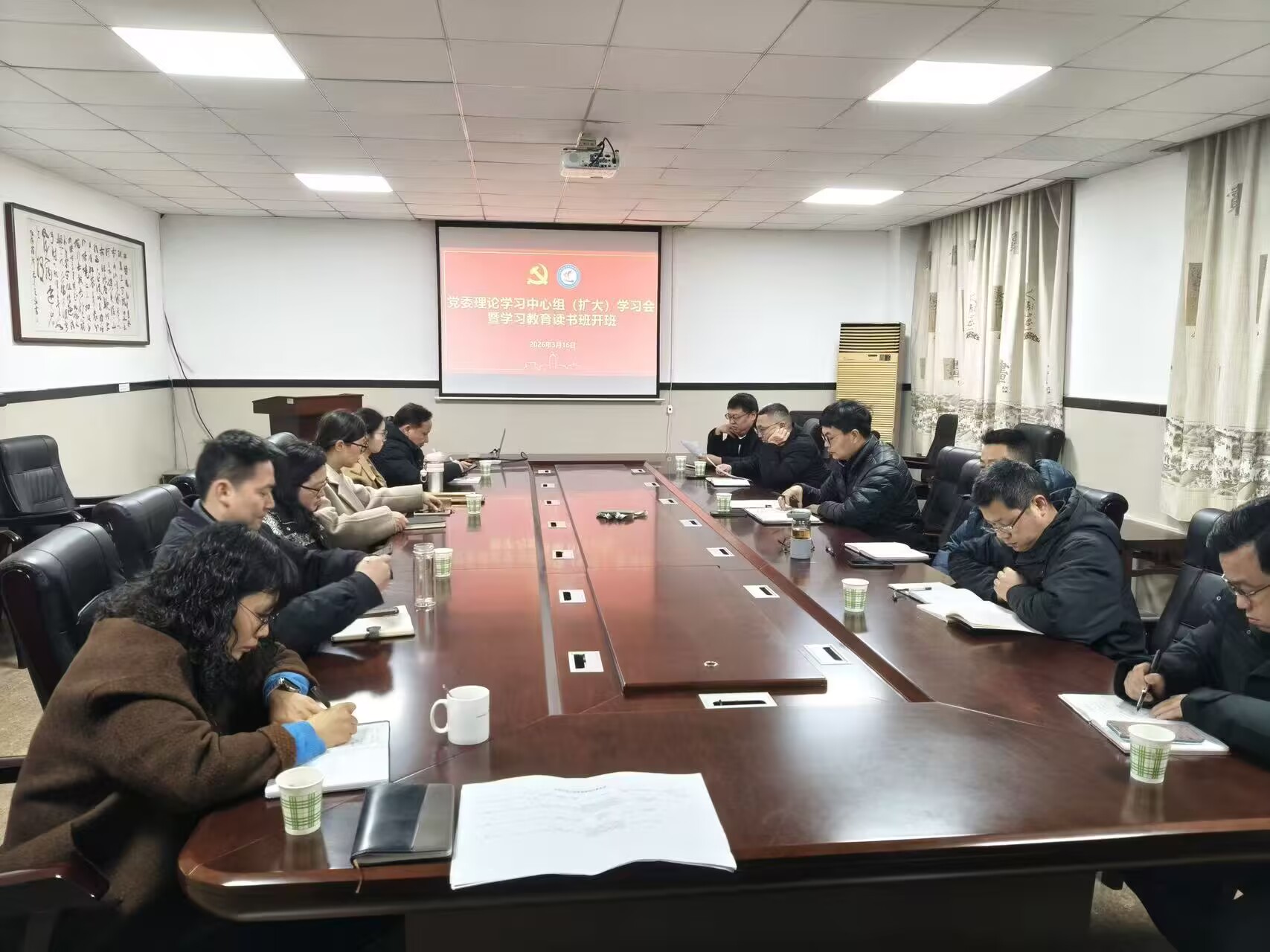 在8教210会议室召开党委理论学习中心组(扩大)学习会,并进行主题研讨。学院党委委员、领导班子成员、各系(中心)主任、党支部书记及行政管理人员参加会议,武汉校区相关人员线上参会。会议由学院党委书记毛德波主持。