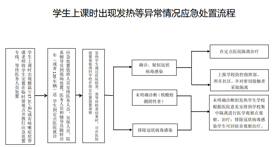 (1)进入校区大门复检异常者按工作人员指引进入转运区,由专车转入指定医院(荆州市胸科医院)检查;